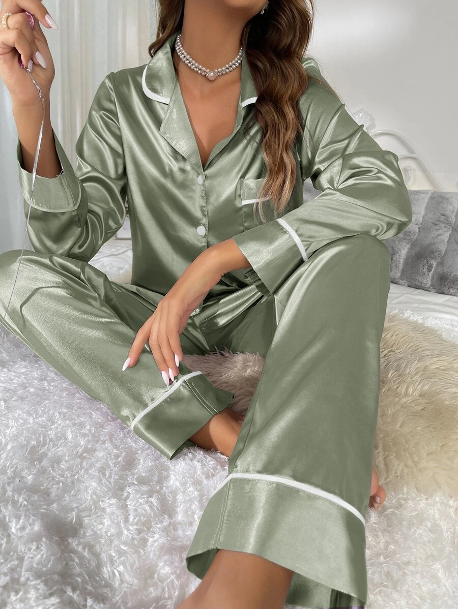 Contrast Binding Button Front Lapel Collar Satin